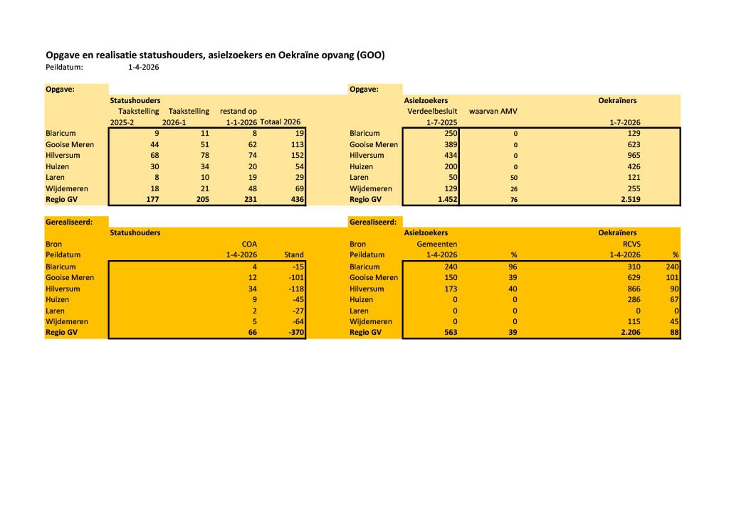 Via het dashboard van de provincie Noord-Holland kunt u zien welke opvangopgave de regio heeft en wat er al gerealiseerd is. Iedere gemeente bepaalt zelf hoe zij invulling geeft aan deze drie opgaven.