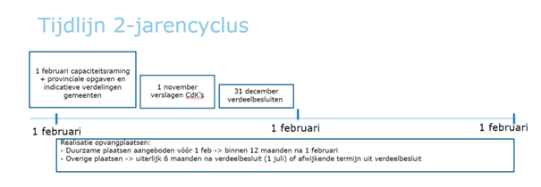 Na twee jaar start de cyclus opnieuw met een nieuwe raming van de benodigde opvangplekken.