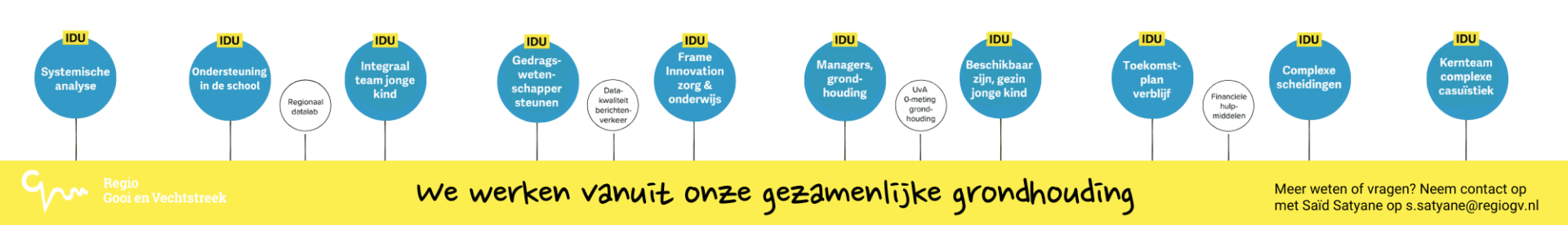In het project IDU hebben professionals, werkzaam in het netwerk van Jeugd en Onderwijs, met elkaar én samen met jeugdigen en ervaringsdeskundigen geleerd over samen anders kijken, denken en doen. Met de gezamenlijk ontwikkelde grondhouding als onderlegger hebben zij lessen geleerd die andere professionals kunnen inspireren om te gaan bewegen en inzicht geven aan benodigde randvoorwaarden binnen organisaties en in het ‘samen’.